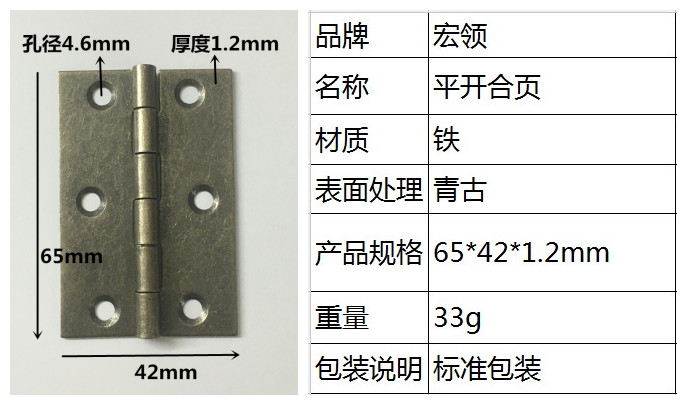 平开合页青古65X42X1.2MM